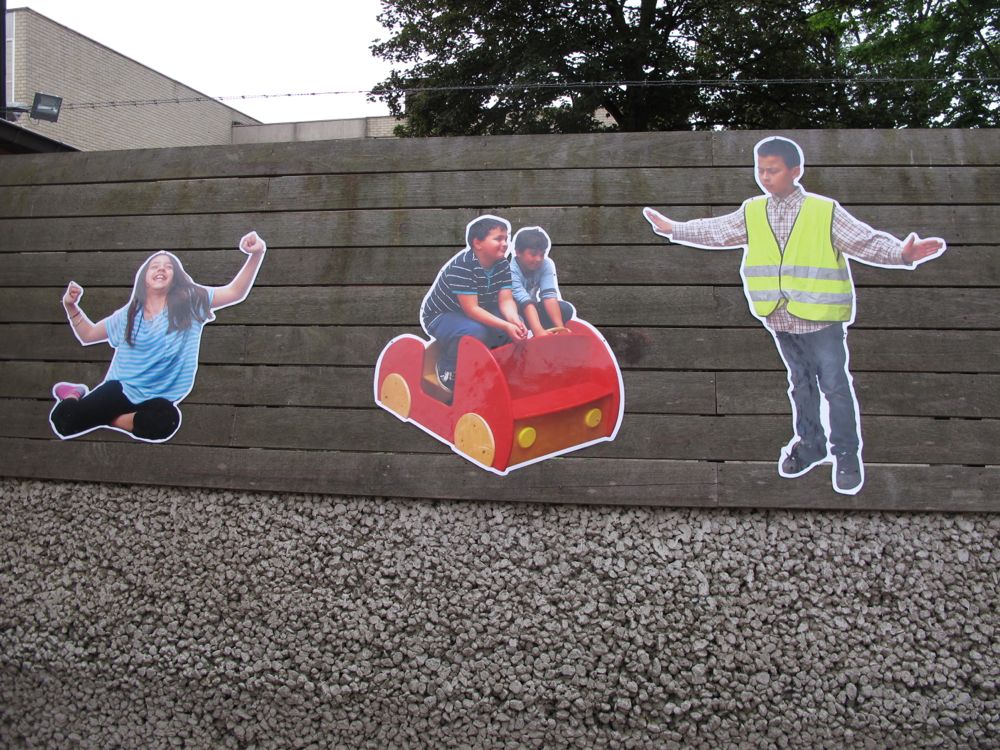 Binnen dit kader maakten de kinderen een fotoreeks om de voorgevel van hun school op te fleuren .