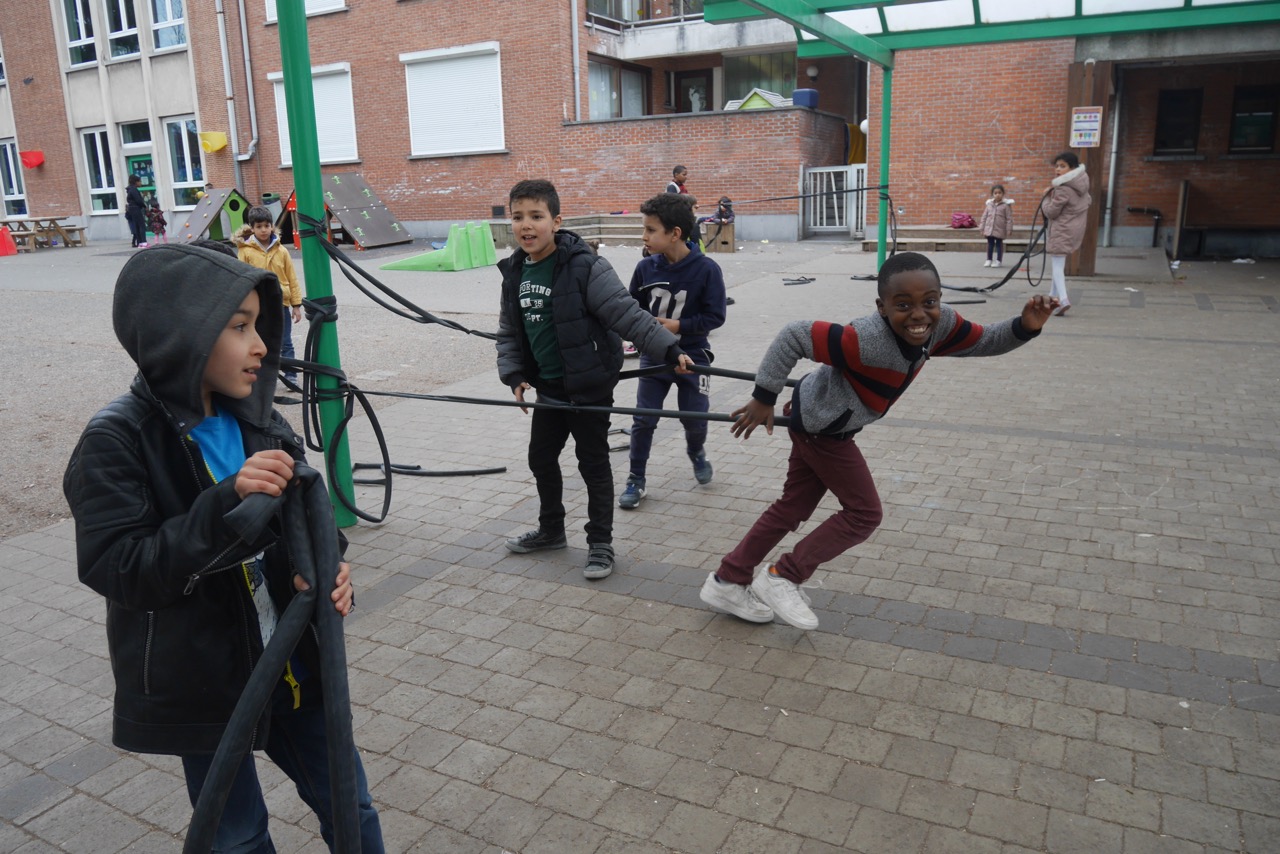 De kinderen van Sint-Martinus te Molenbeek ontdekken elke week nieuwe materialen en technieken waarmee ze hun eigen ‘duurzaam’ speeloed kunnen maken.