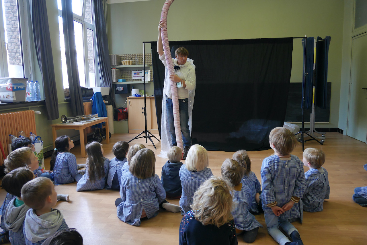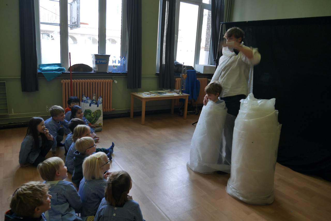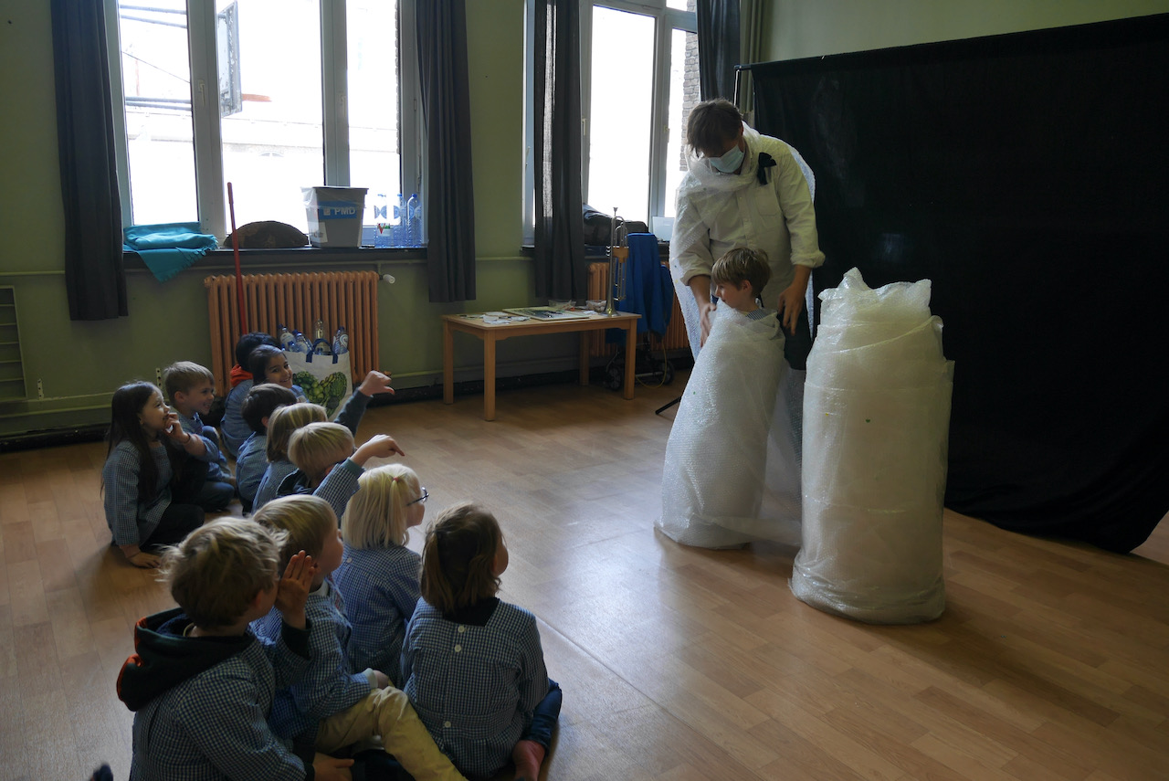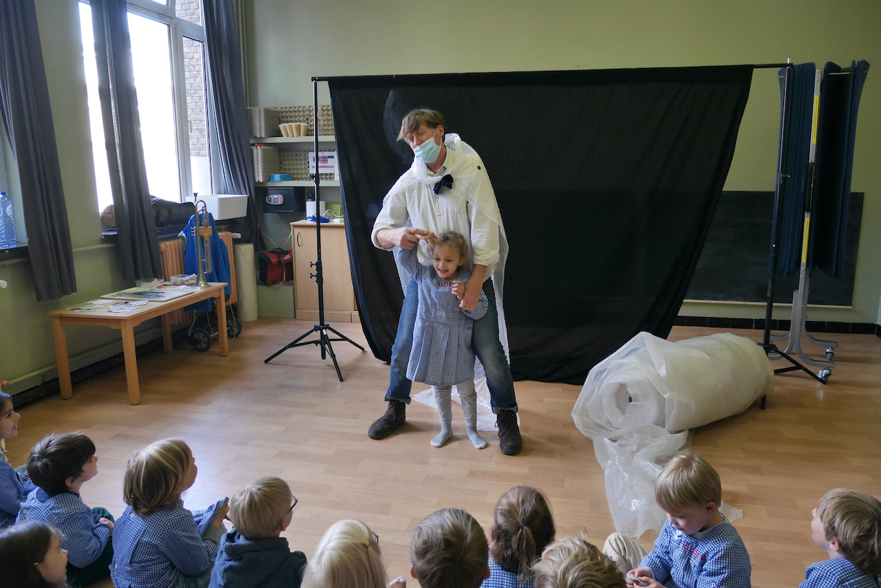 Plastikman is jarig en gaat op zoek naar plaatsen waar hij dat kan vieren… ook dit jaar ging hij op bezoek in een aantal kleuterklassen om met zoveel mogelijk kleuters een feestje te bouwen.