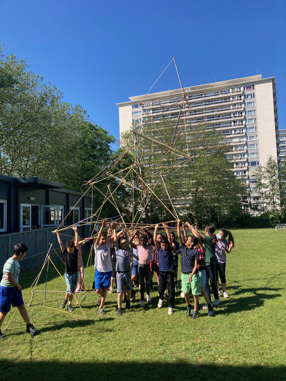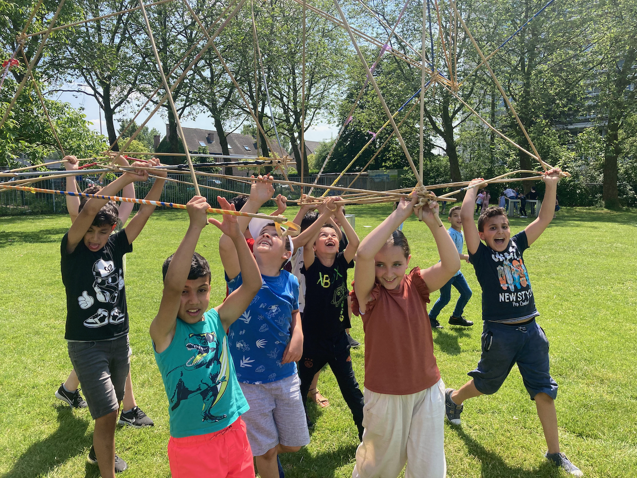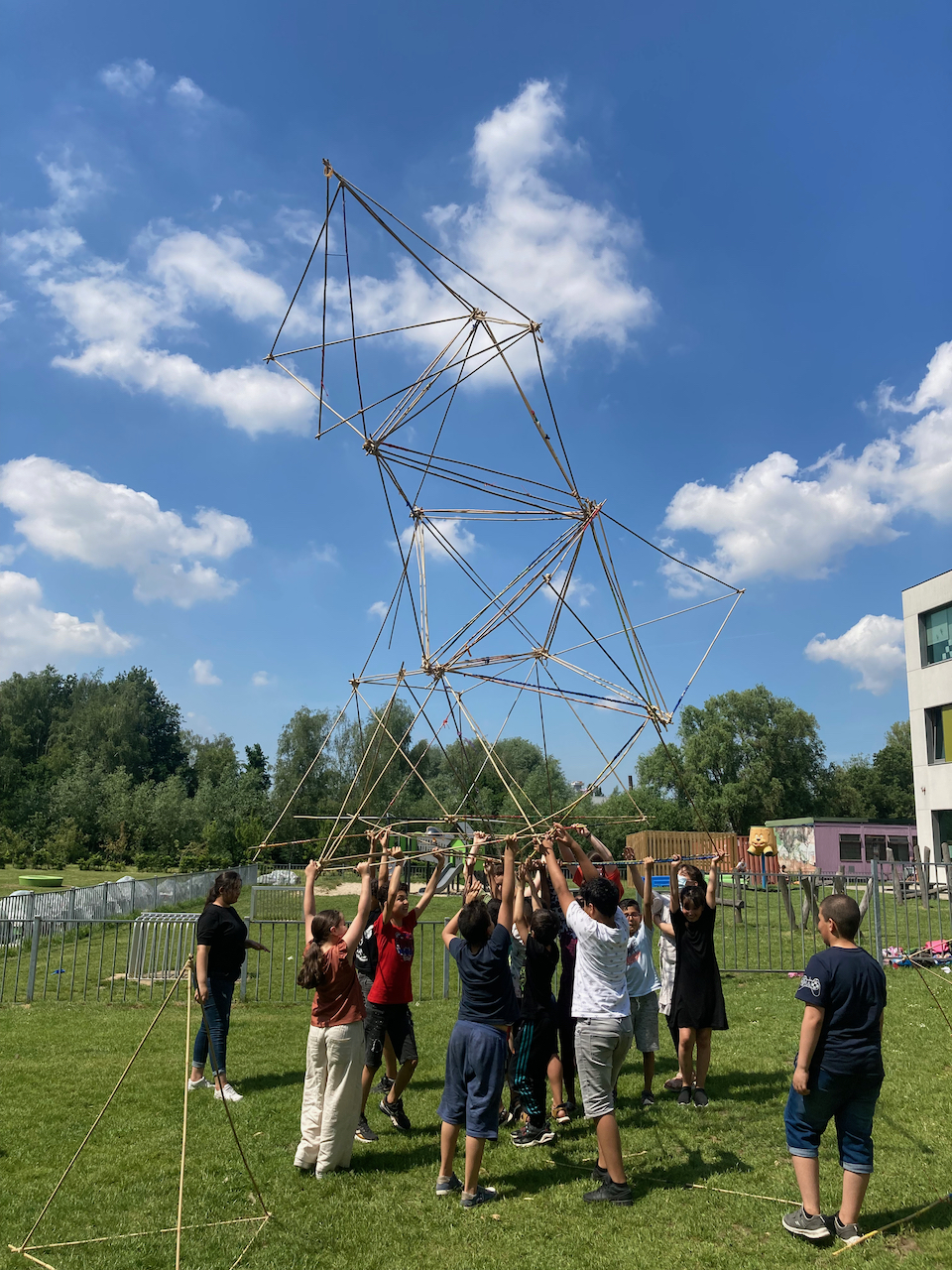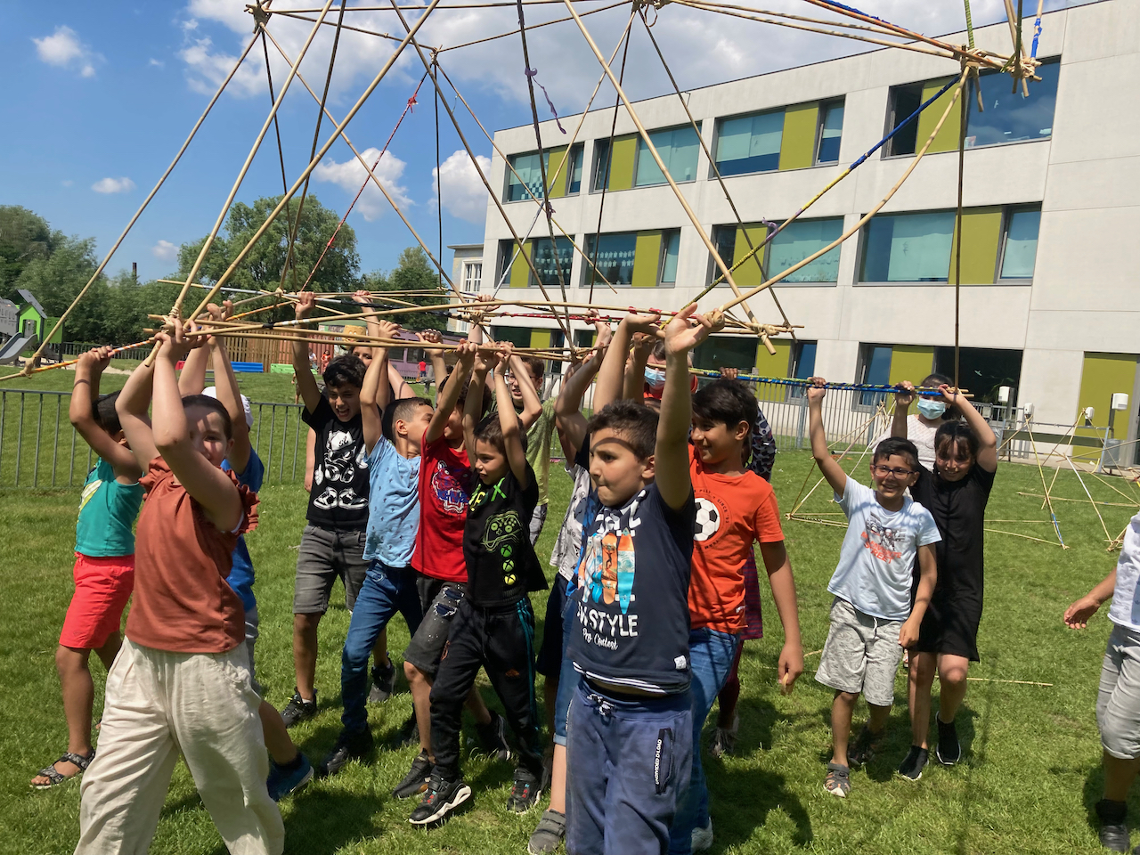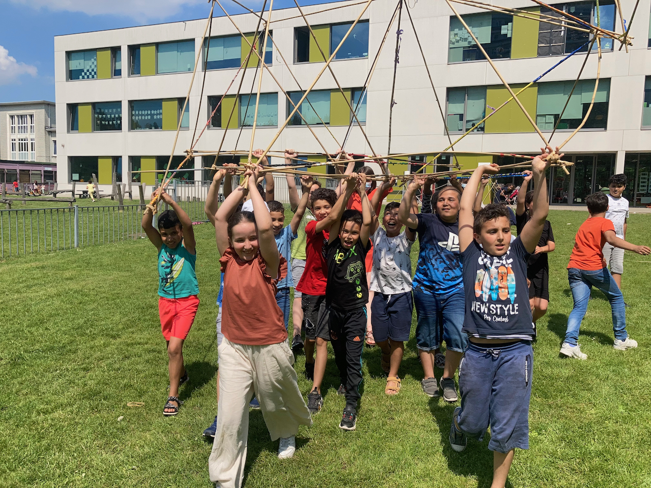 Onder een blakende zon vond het laatste bamboeatelier van dit schooljaar plaats te Hoboken.