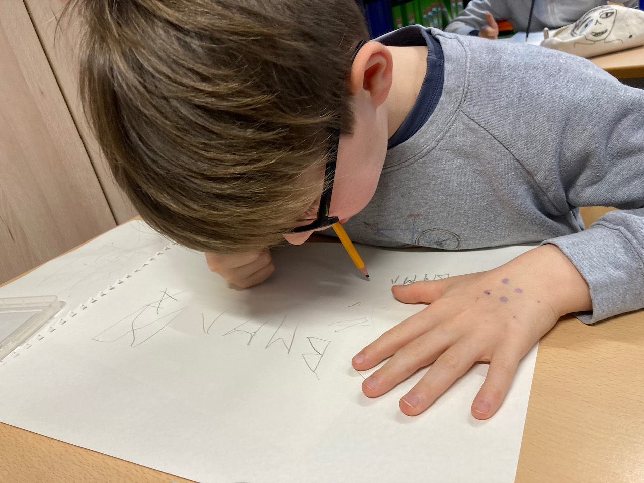 Het ‘Erfggoedtraject’ 2022 is van start gegaan in de gemeentelijke basisschool De Kriebel. De leerlingen krijgen een reeks workshops rond ‘schrijven en taal’ door alle tijden heen. In het eerste atelier ontdekken ze niet enkel de herkomst van onze eigen taal maar ook alle verschillende schriften doorheen de eeuwen en werelddelen. Het resultaat van hu ontdekkingstocht zal tentoongetseld worden op Erfgoeddag 2022.