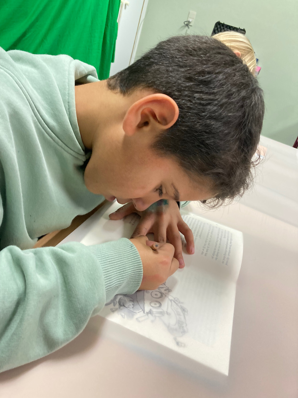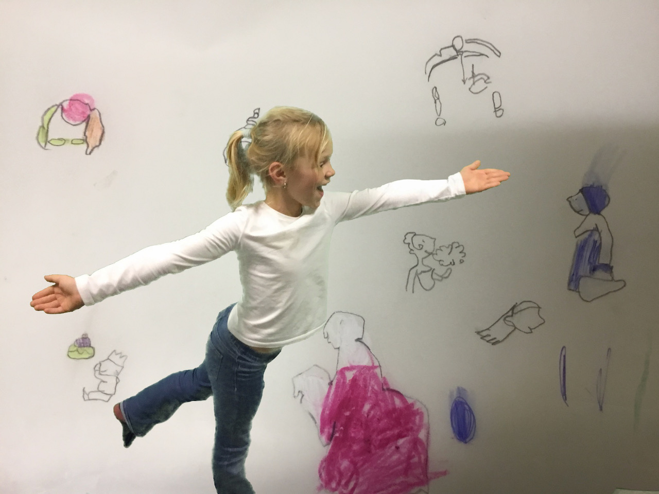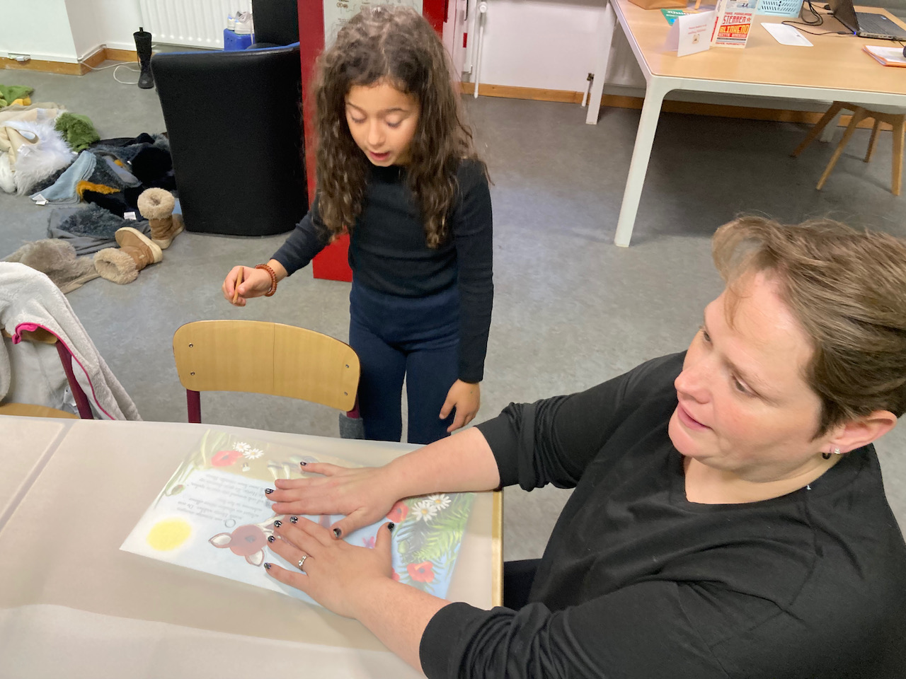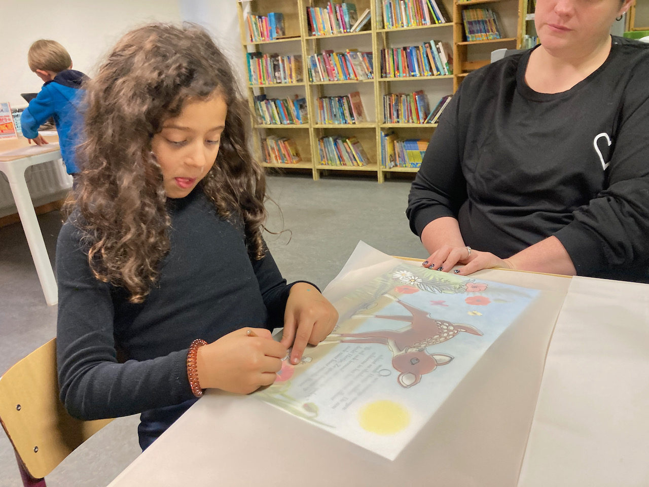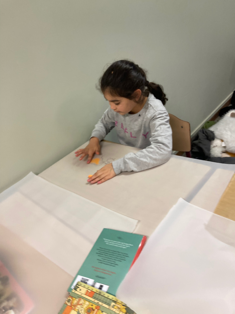 Wanneer boeken een feest worden. Een teken en foto-atelier met boeken waar de kinderen in hun eigen tekening kruipen.