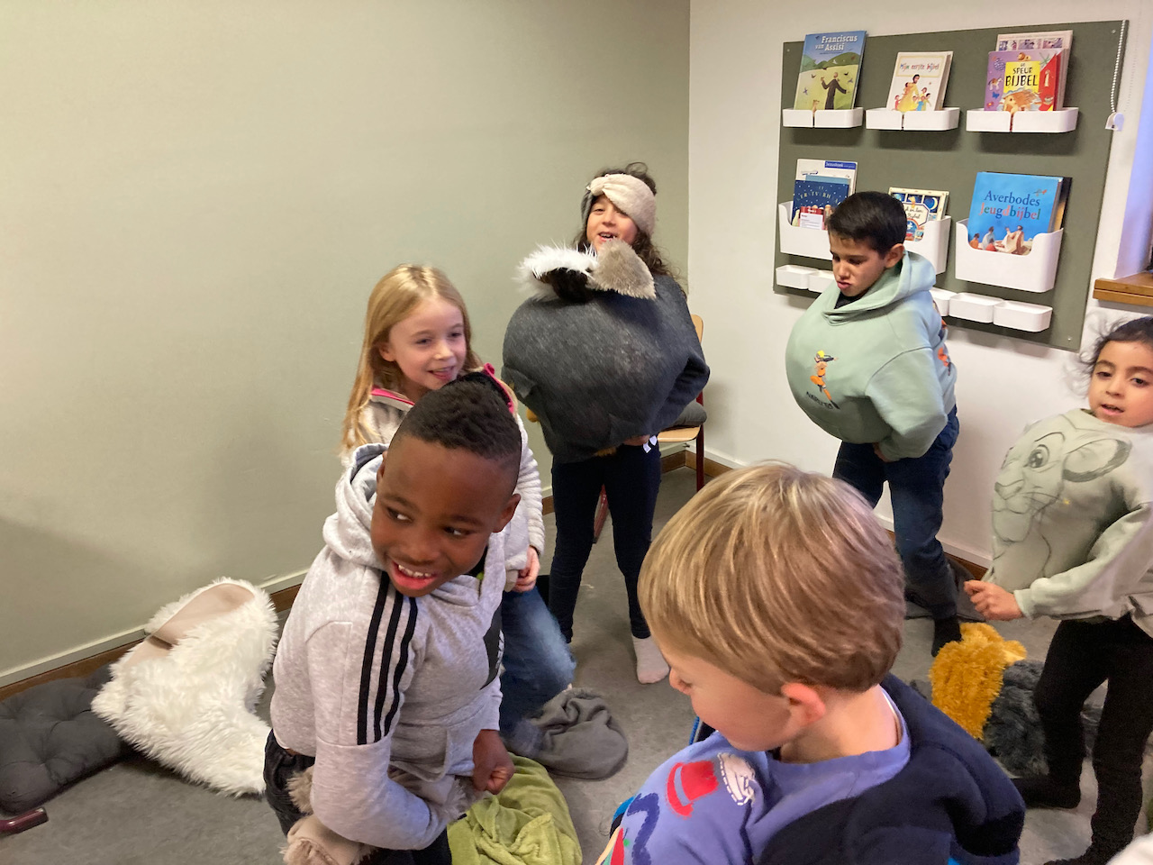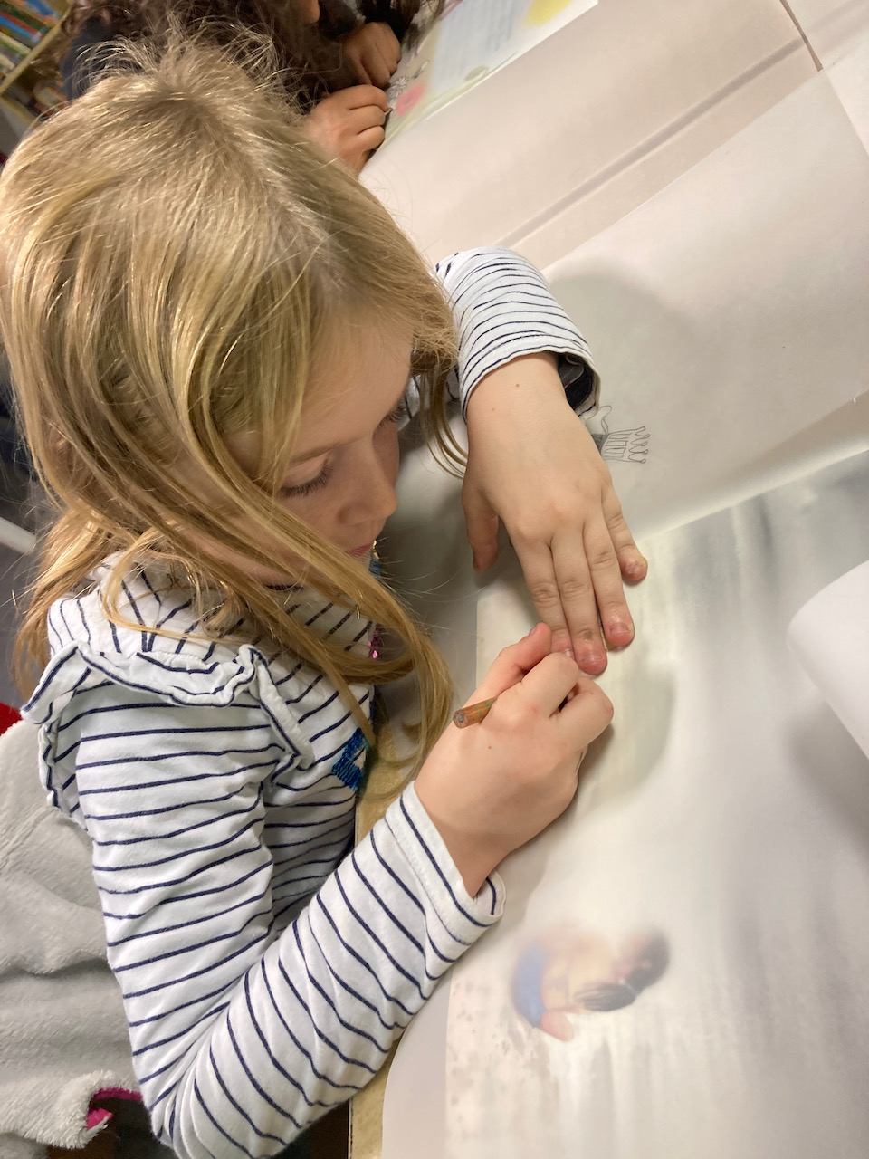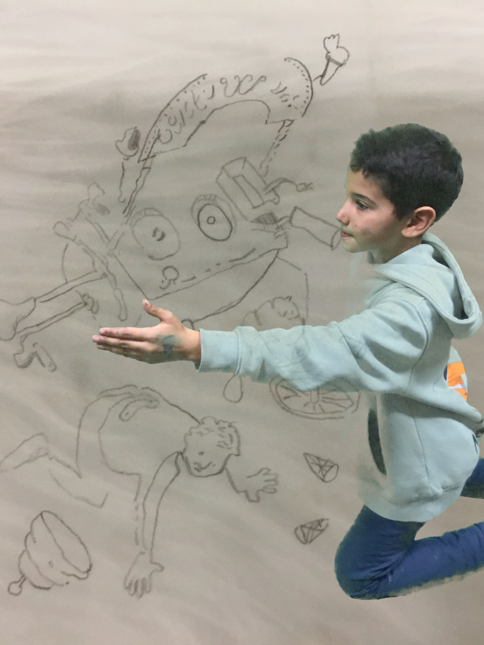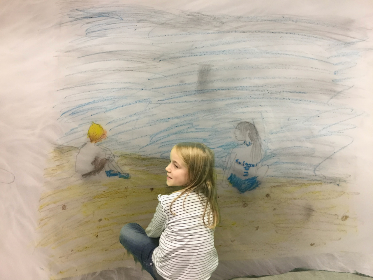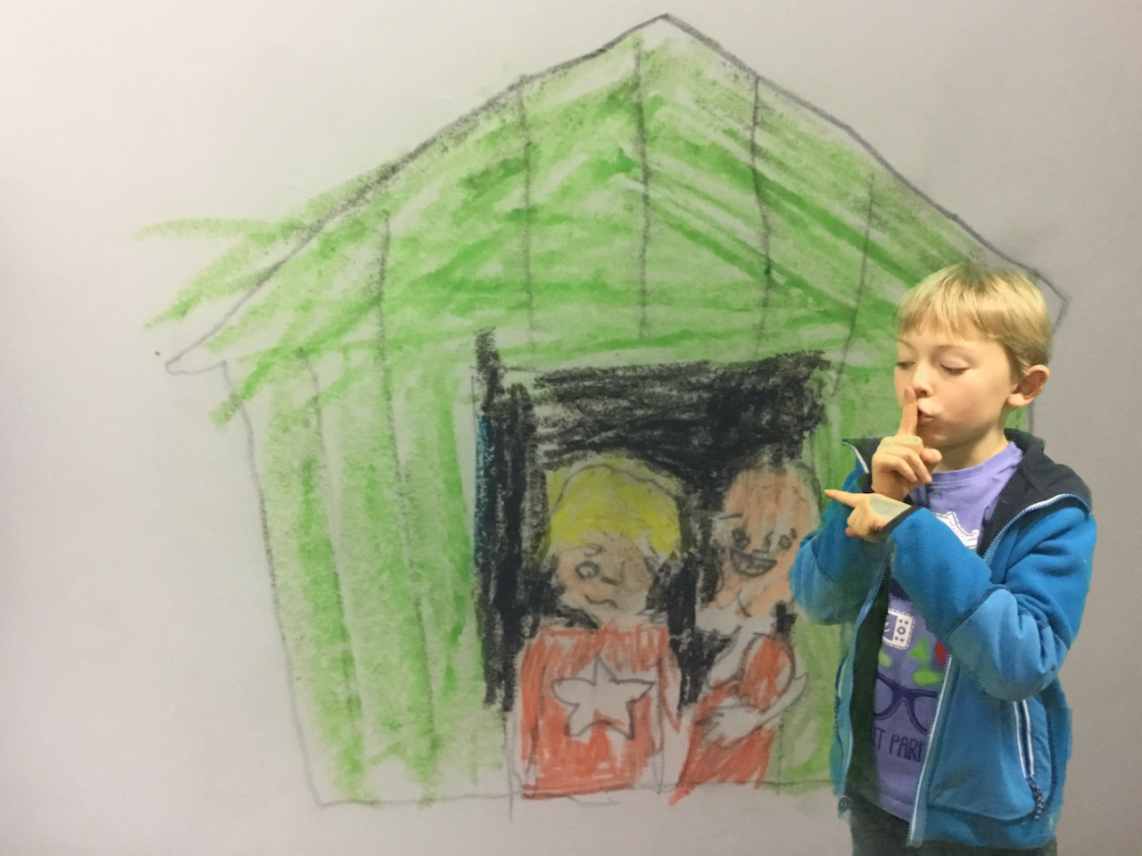 Wanneer boeken een feest worden. Een teken en foto-atelier met boeken waar de kinderen in hun eigen tekening kruipen.