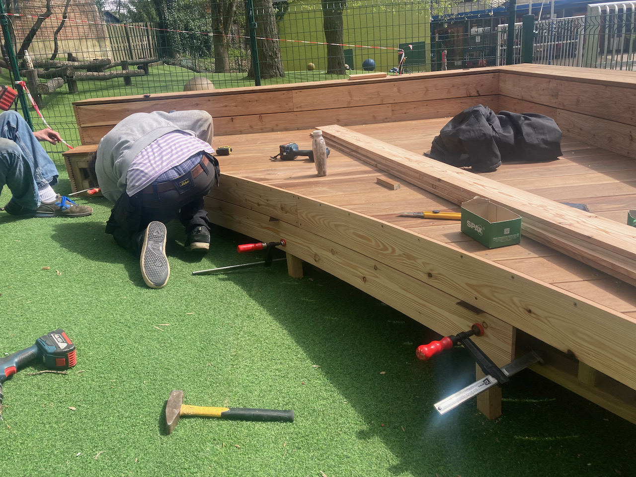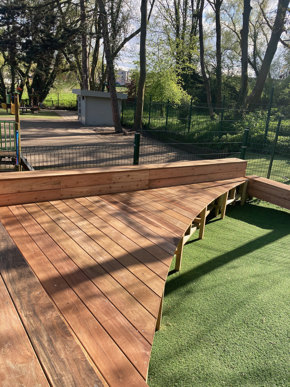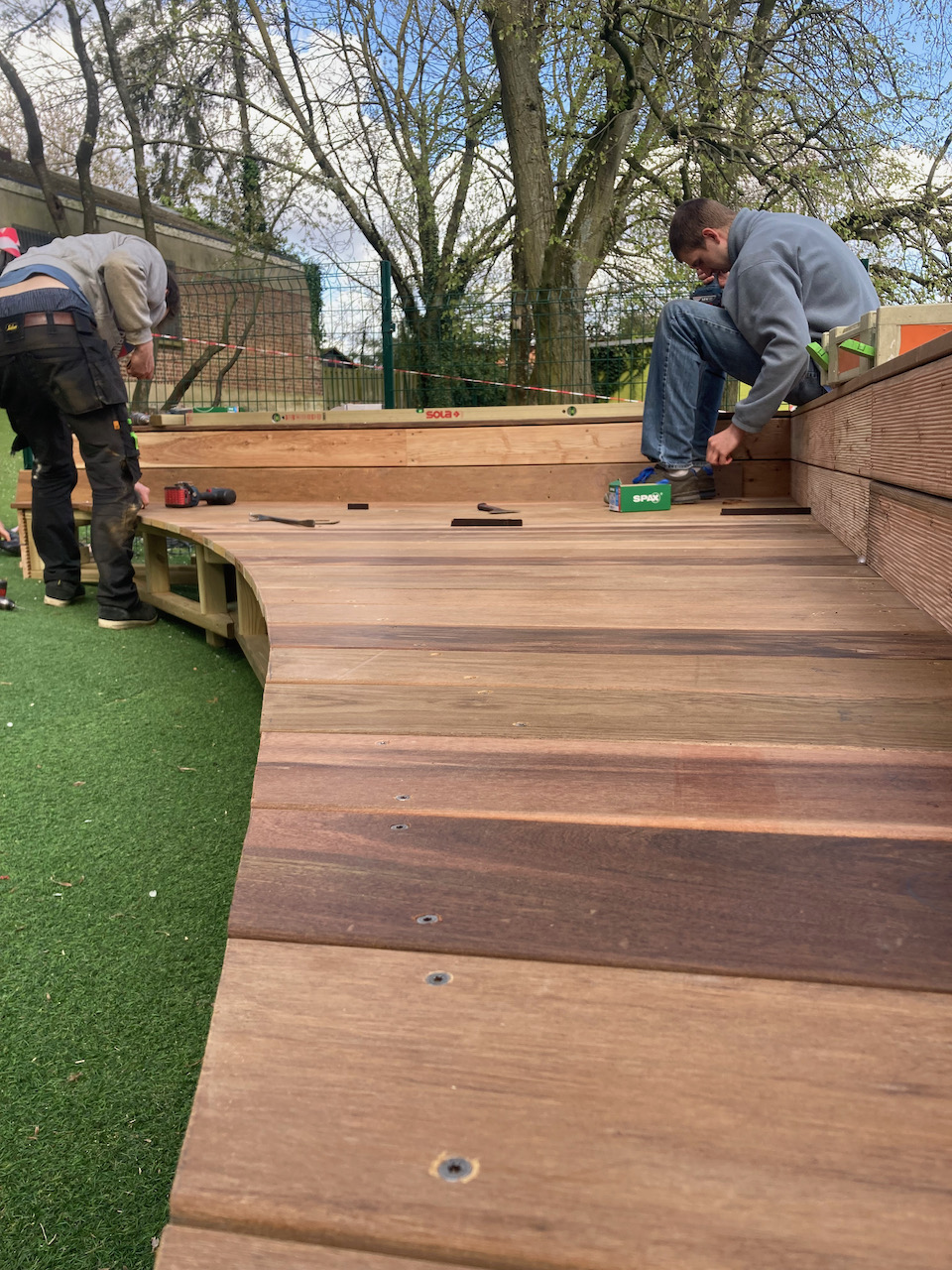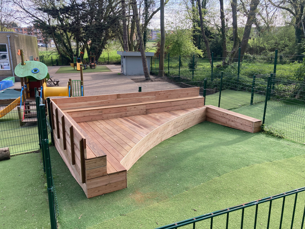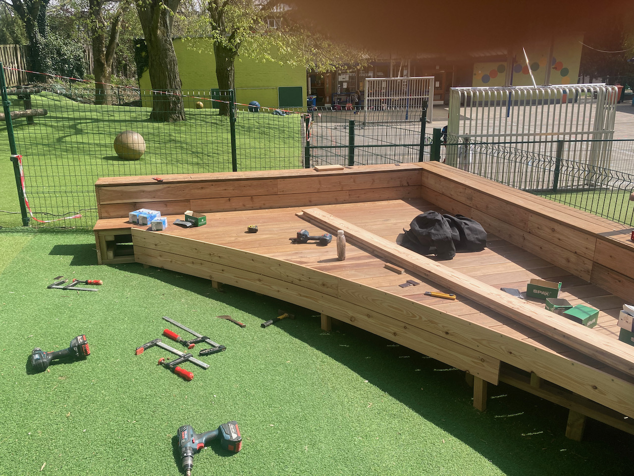 Een mooi staaltje houtwerk dat alvast bij de kinderen goed in de smaak viel … ze kijken er naar uit om er hun boekjes te lezen, de verjaardagen te vieren, te dansen en nog zoveel meer… laat de zon maar komen dan kunnen die openluchtklassen beginnen.