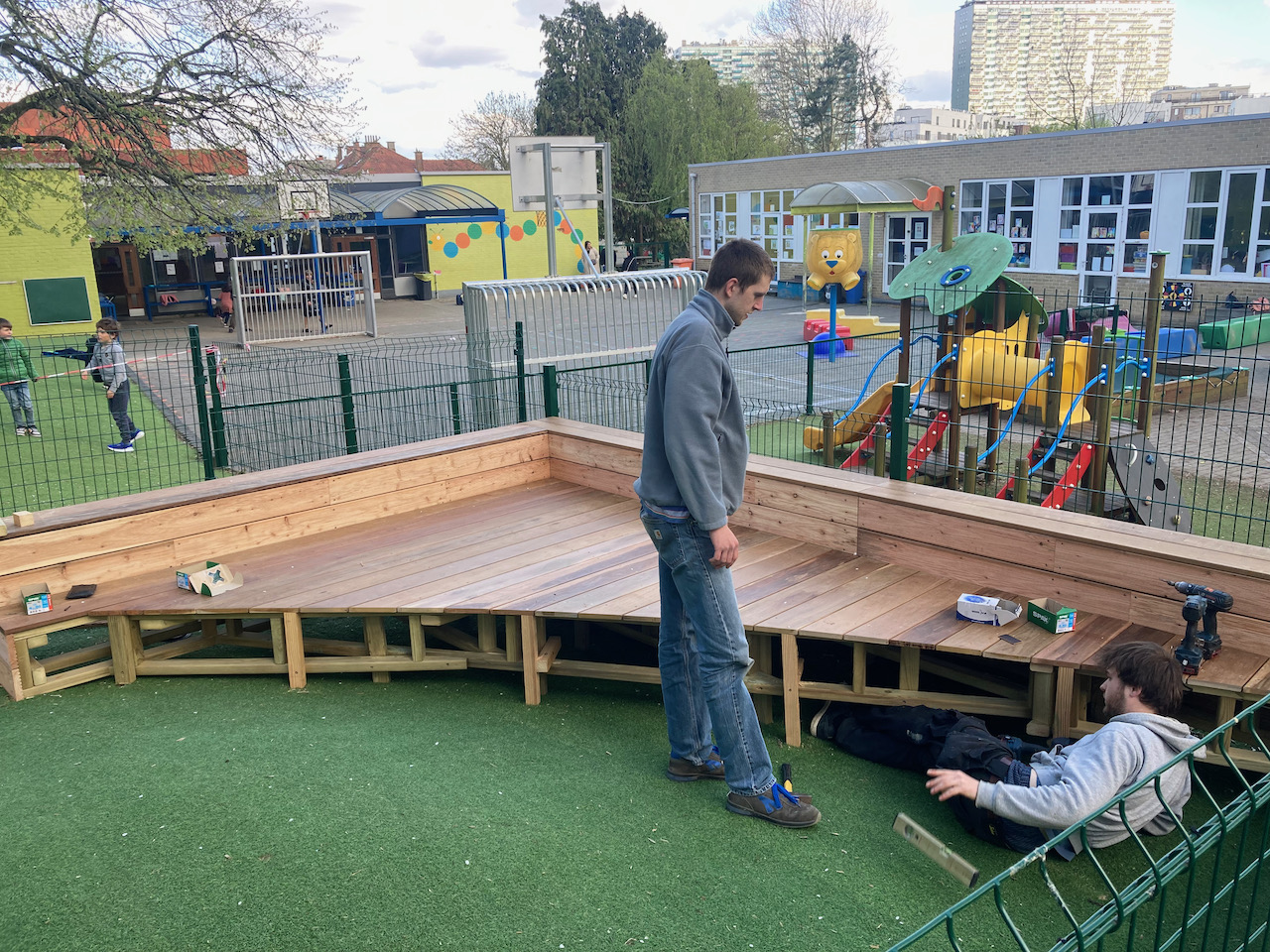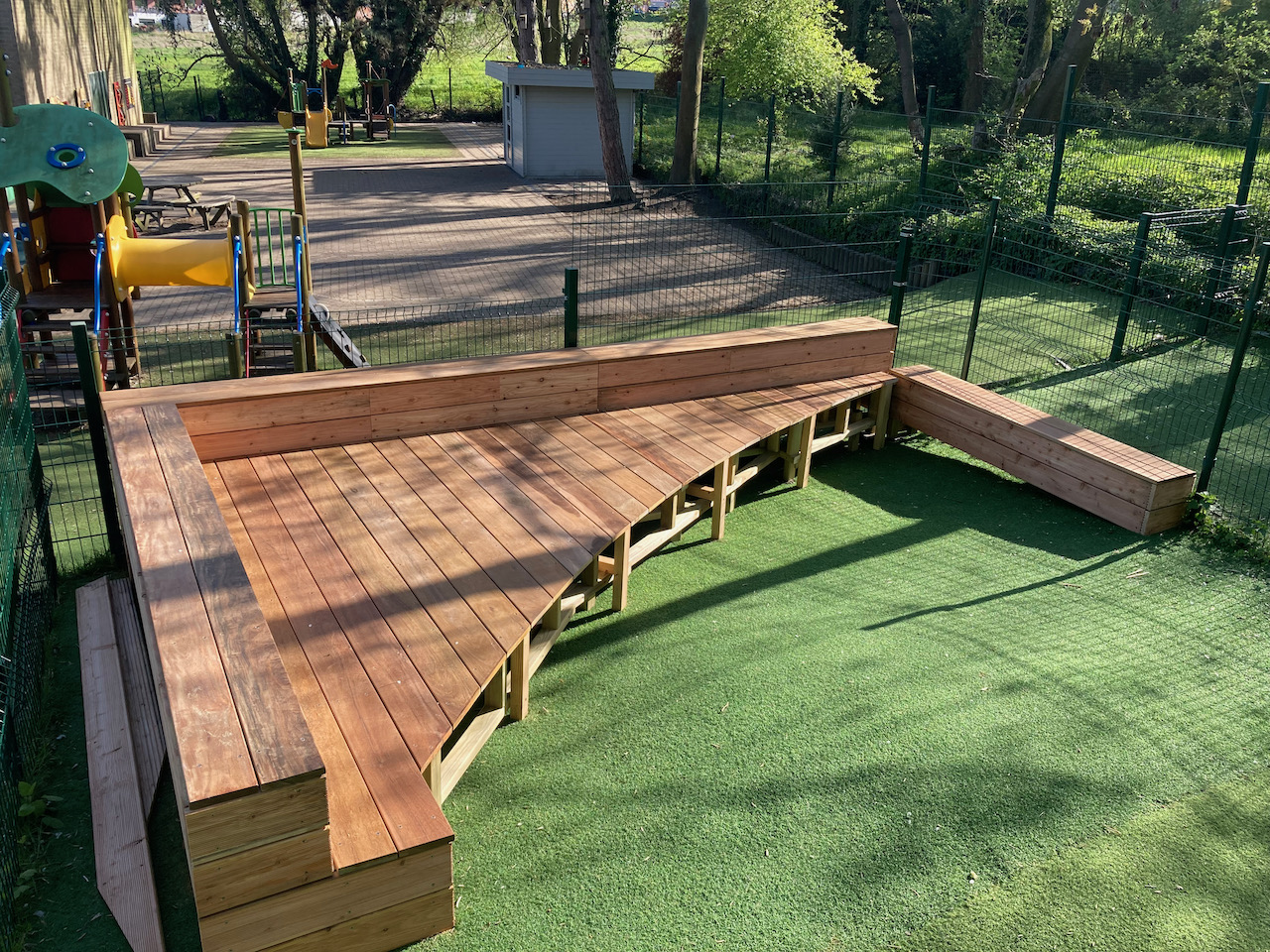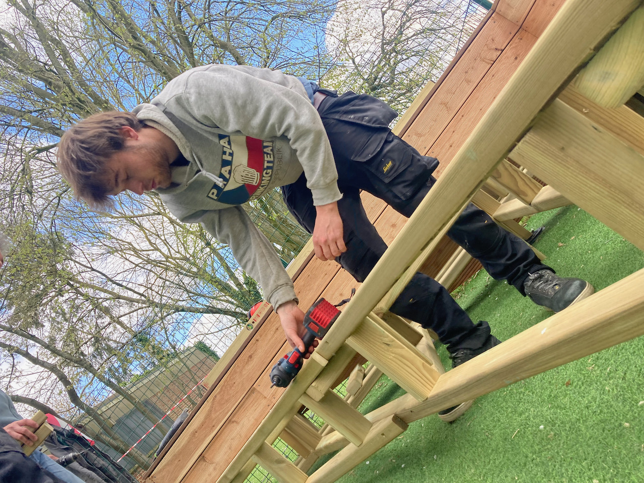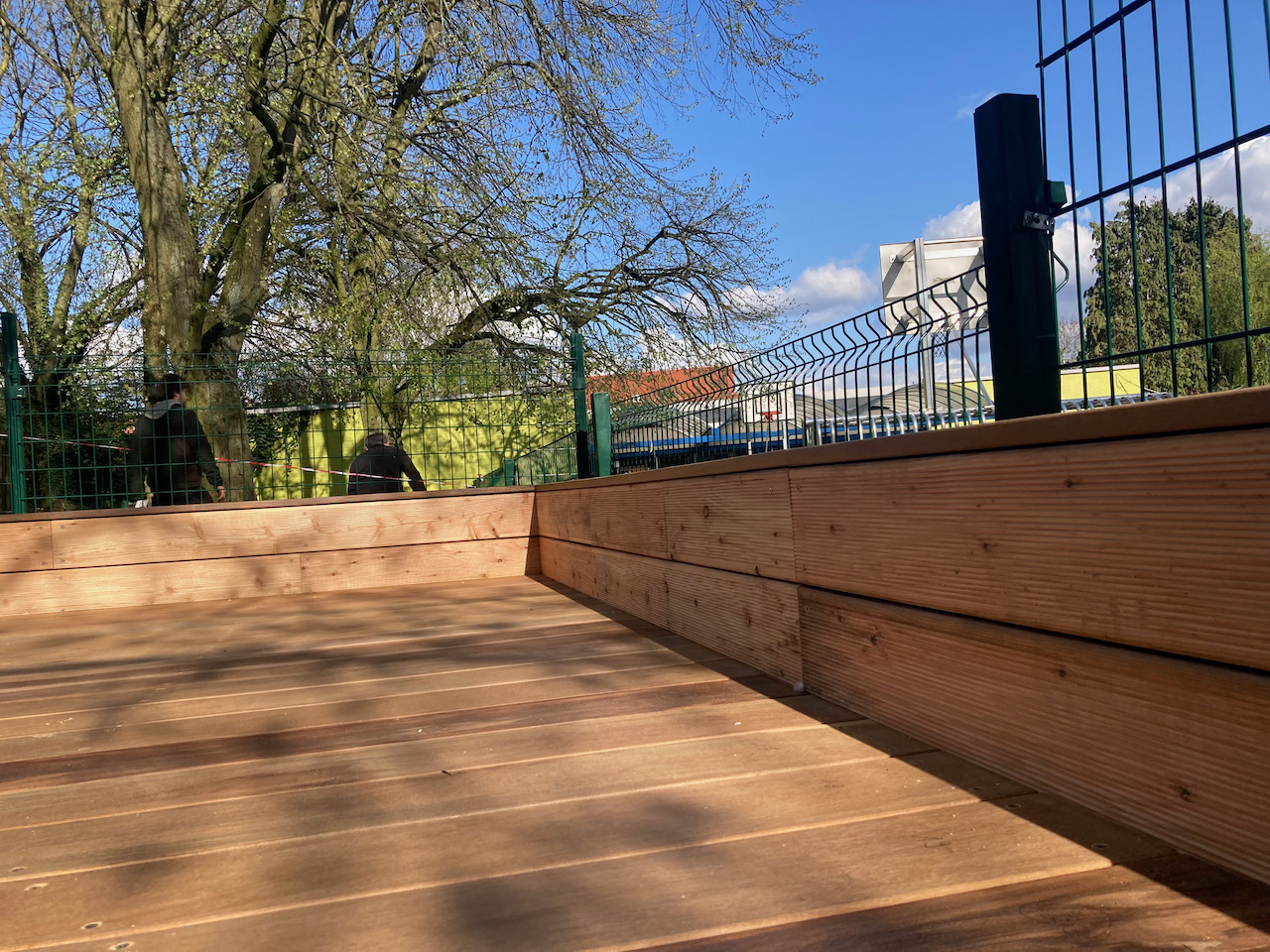 Een mooi staaltje houtwerk dat alvast bij de kinderen goed in de smaak viel … ze kijken er naar uit om er hun boekjes te lezen, de verjaardagen te vieren, te dansen en nog zoveel meer… laat de zon maar komen dan kunnen die openluchtklassen beginnen.