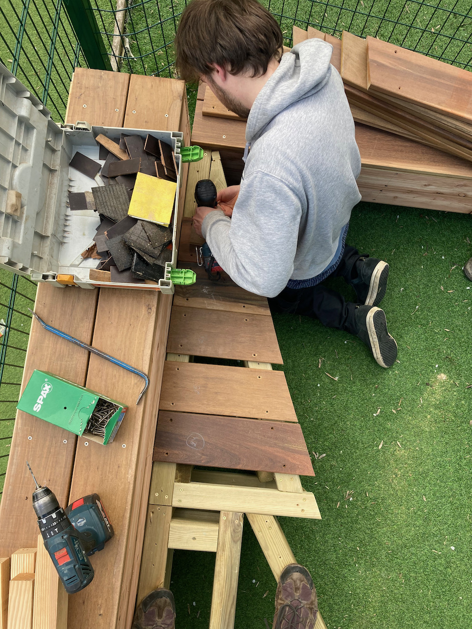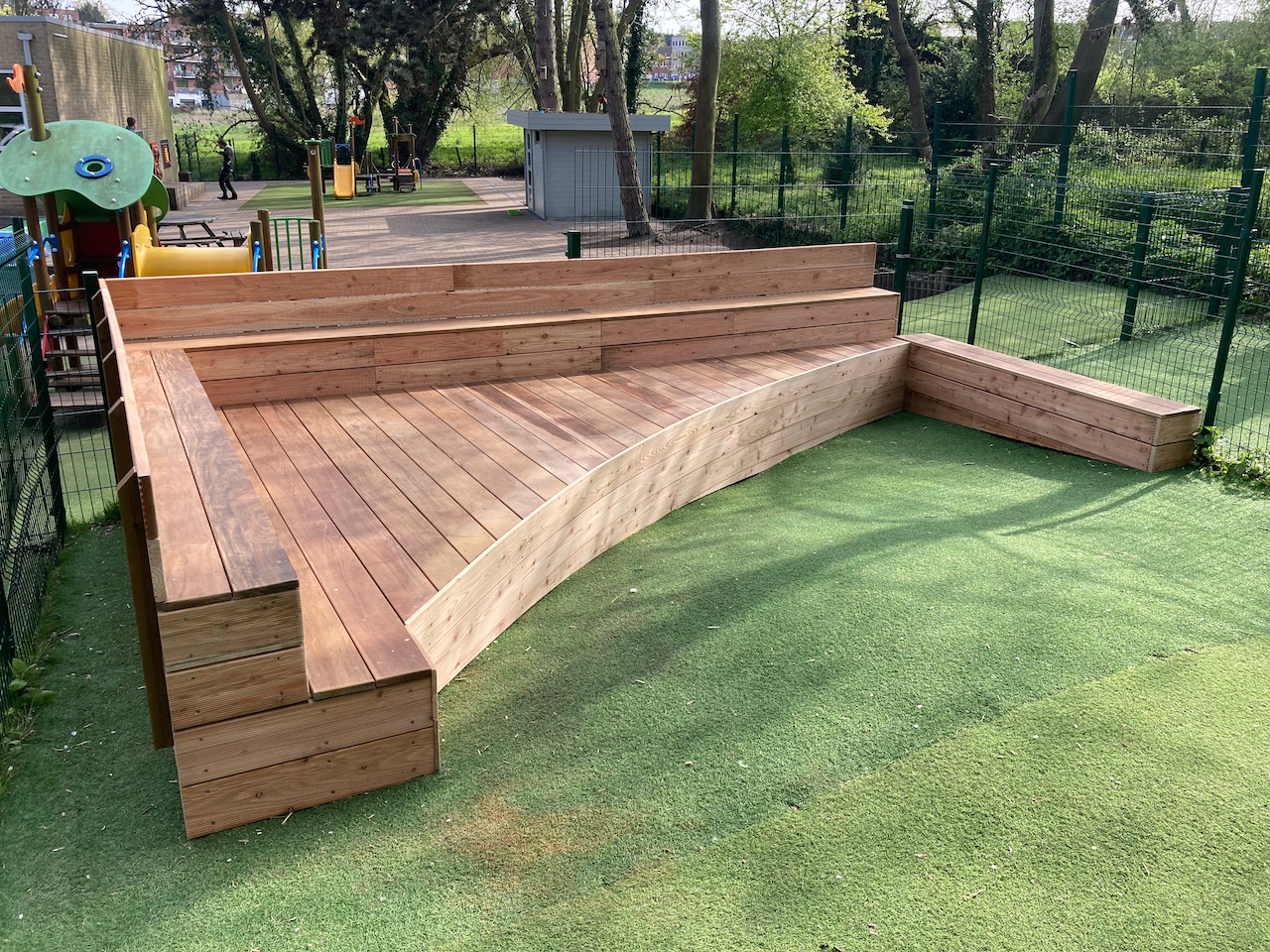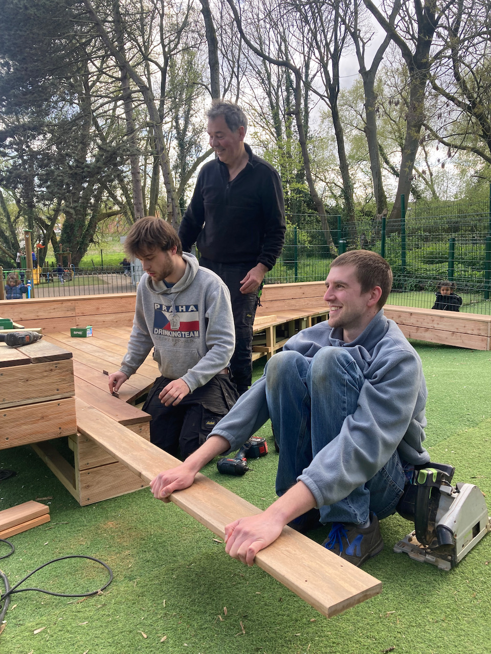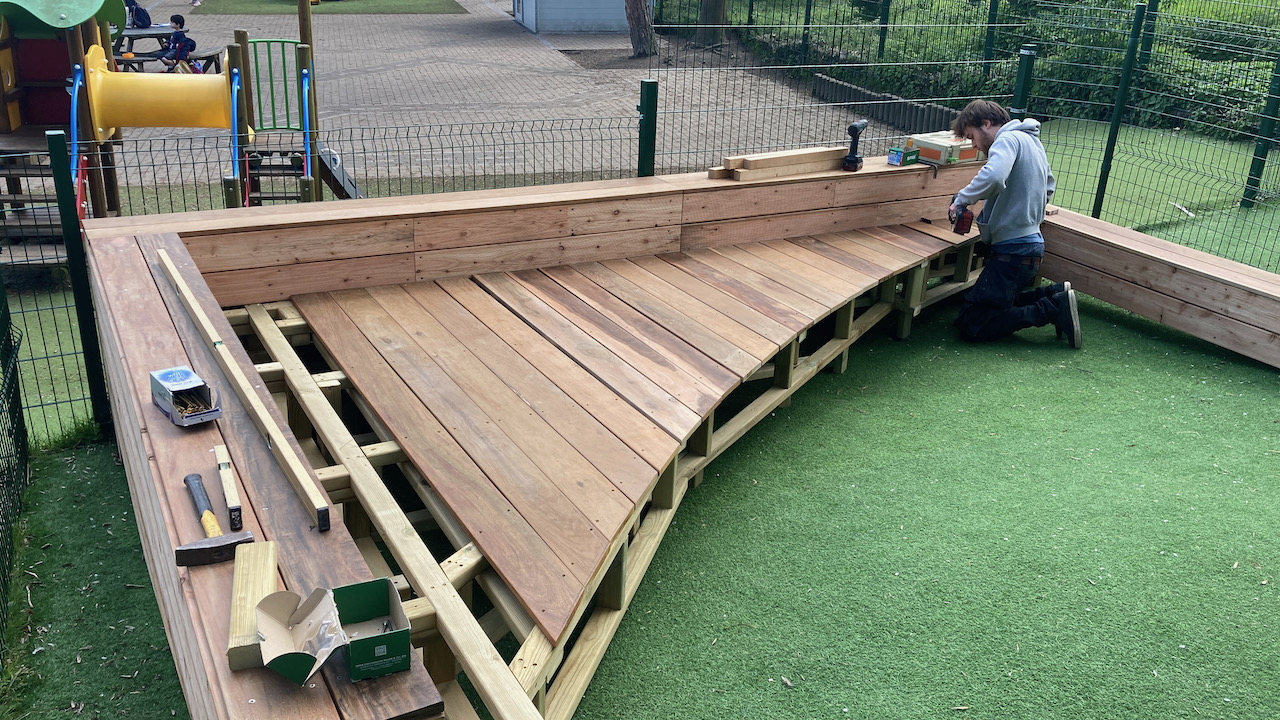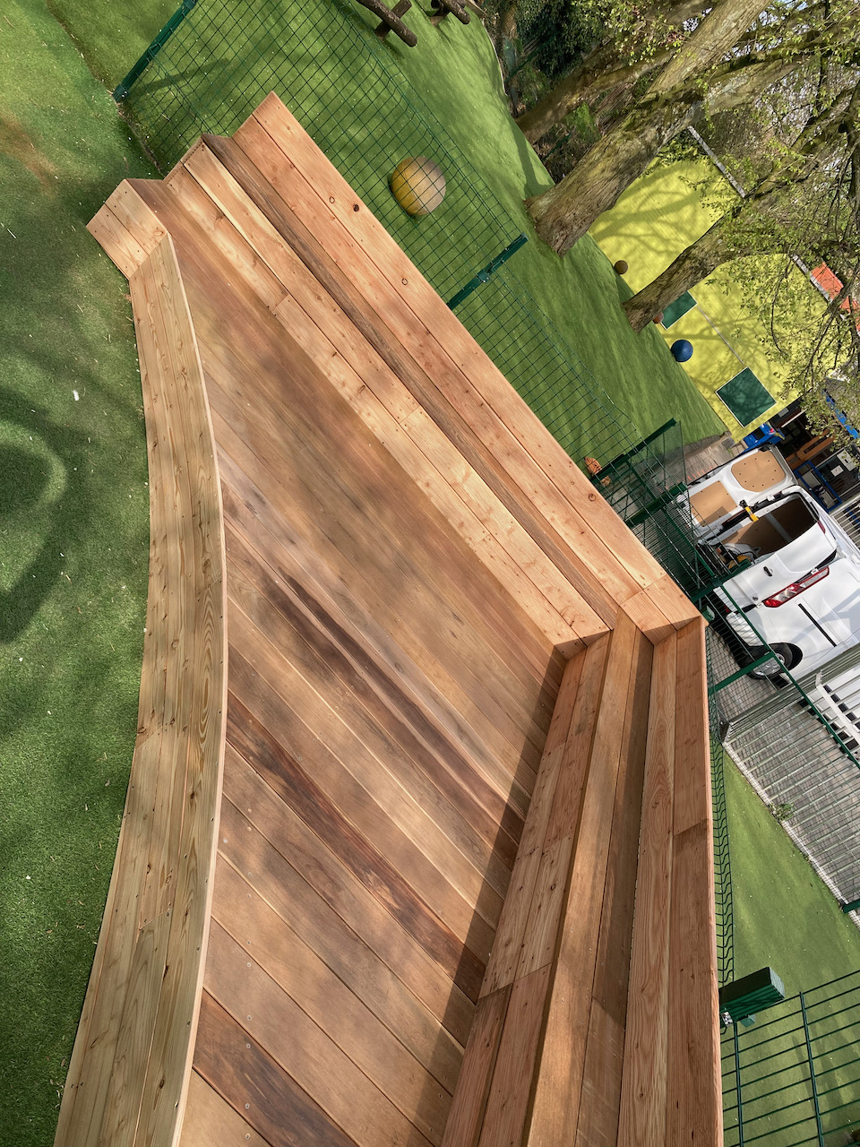 Een mooi staaltje houtwerk dat alvast bij de kinderen goed in de smaak viel … ze kijken er naar uit om er hun boekjes te lezen, de verjaardagen te vieren, te dansen en nog zoveel meer… laat de zon maar komen dan kunnen die openluchtklassen beginnen.