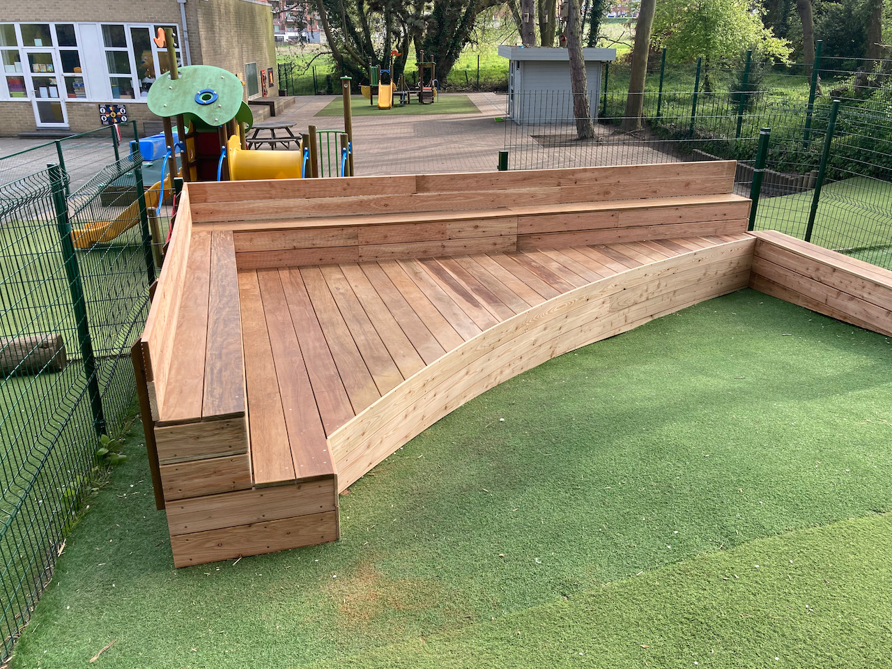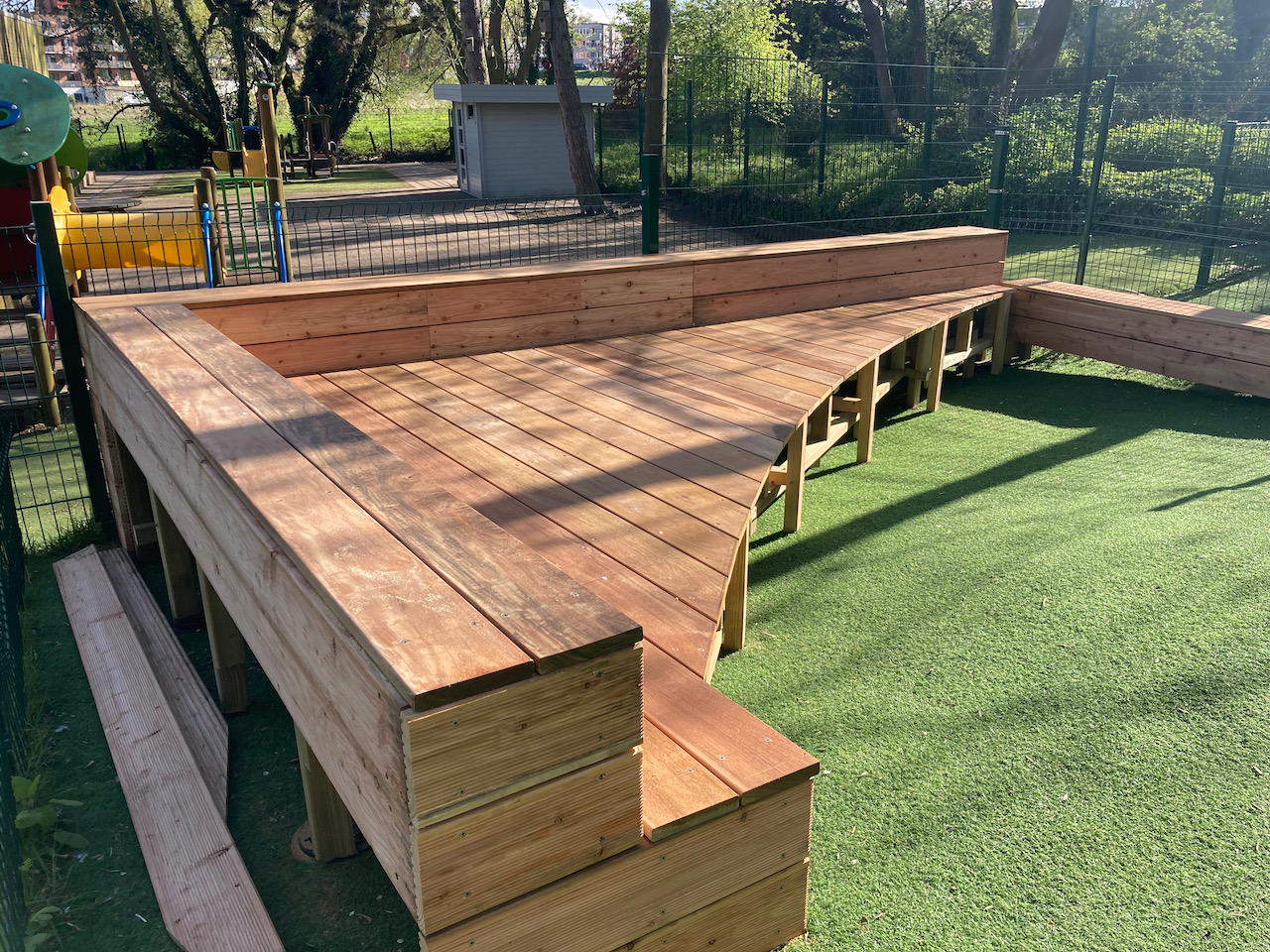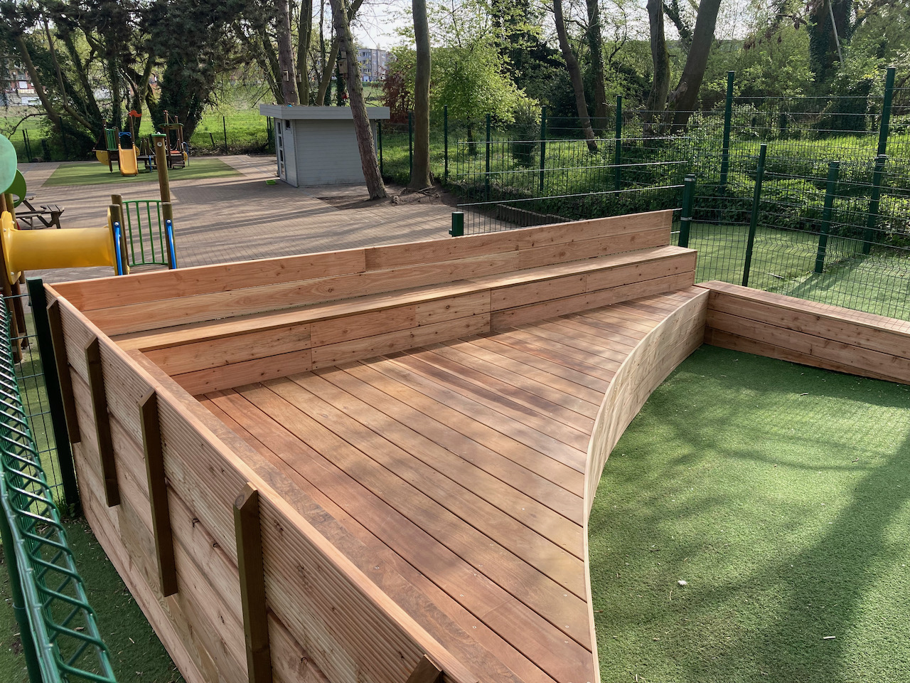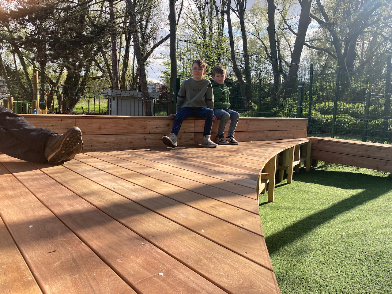 Een mooi staaltje houtwerk dat alvast bij de kinderen goed in de smaak viel … ze kijken er naar uit om er hun boekjes te lezen, de verjaardagen te vieren, te dansen en nog zoveel meer… laat de zon maar komen dan kunnen die openluchtklassen beginnen.