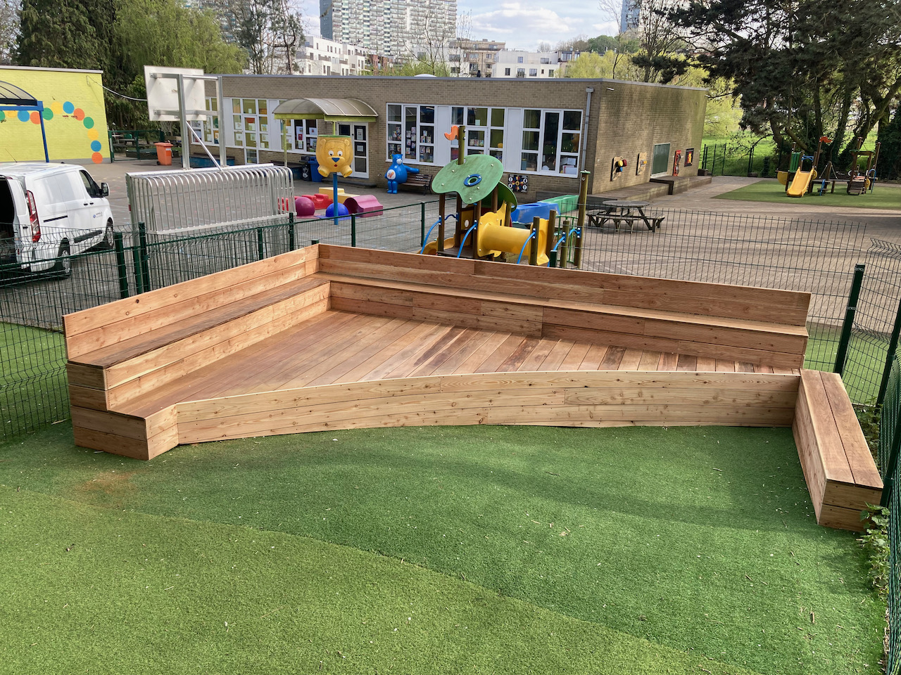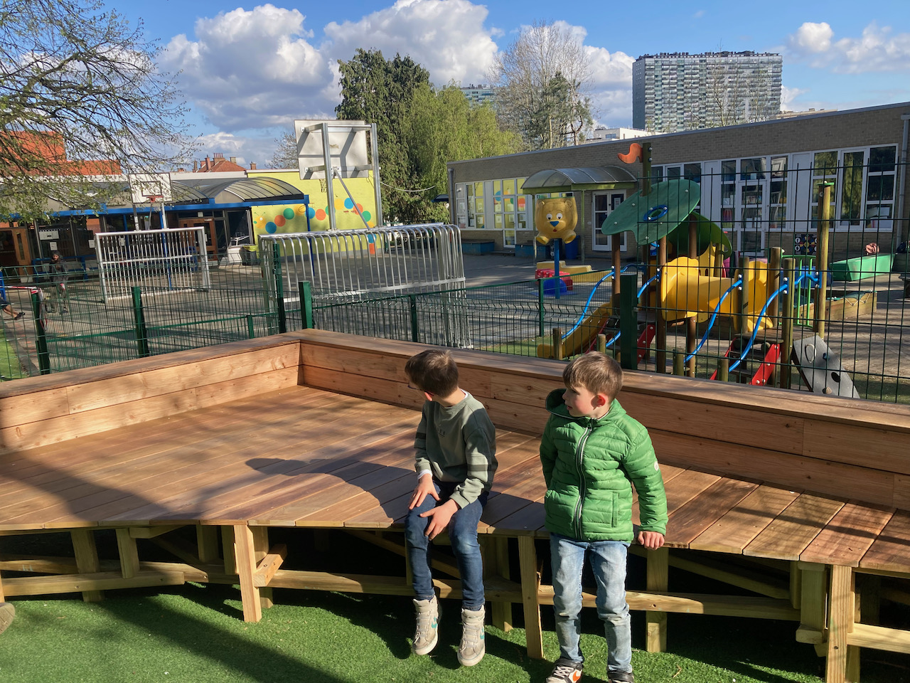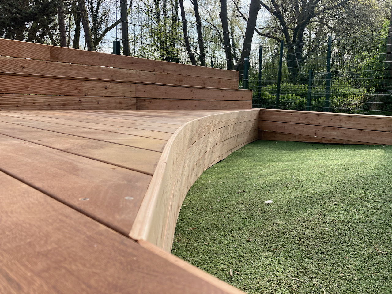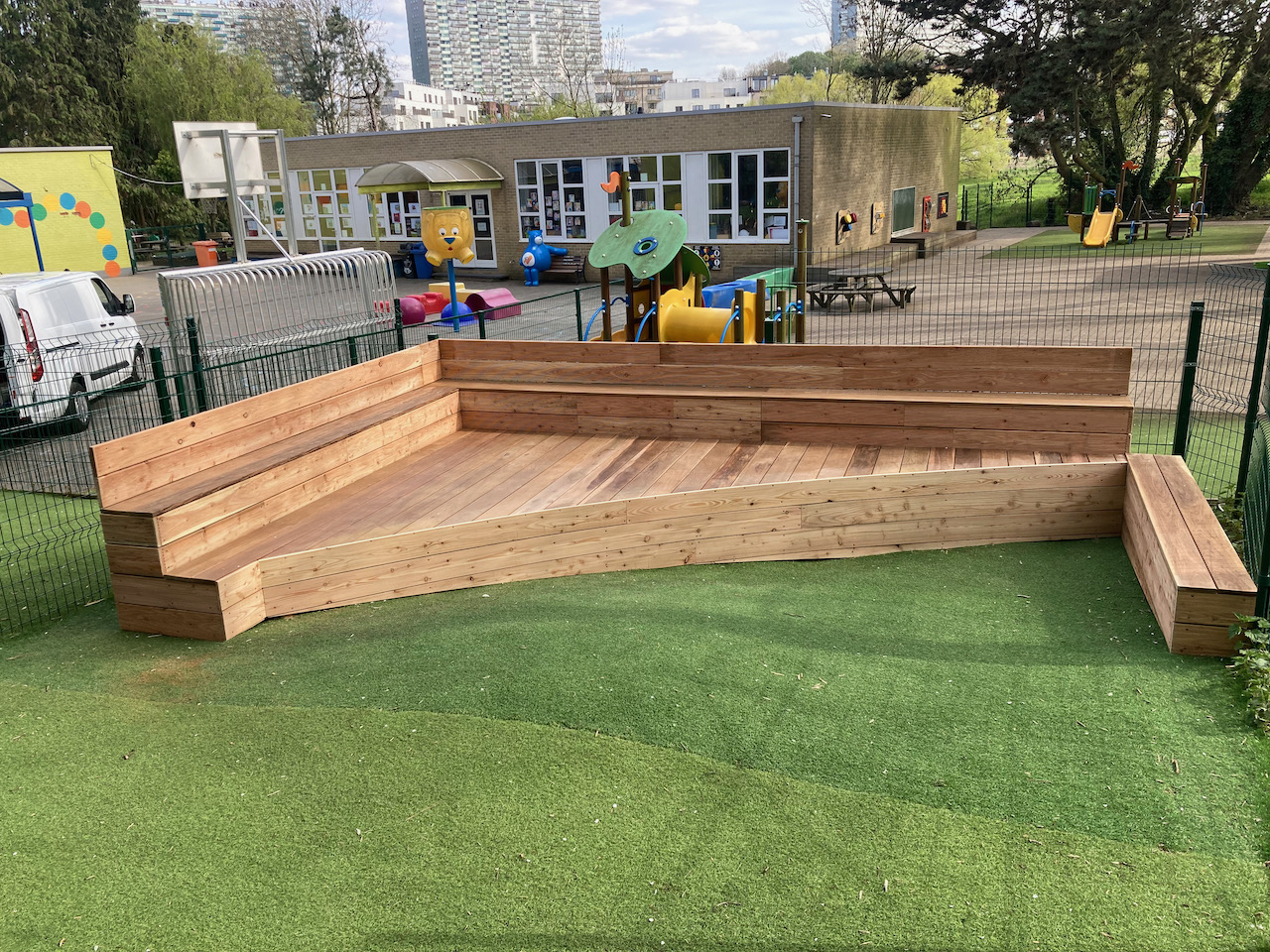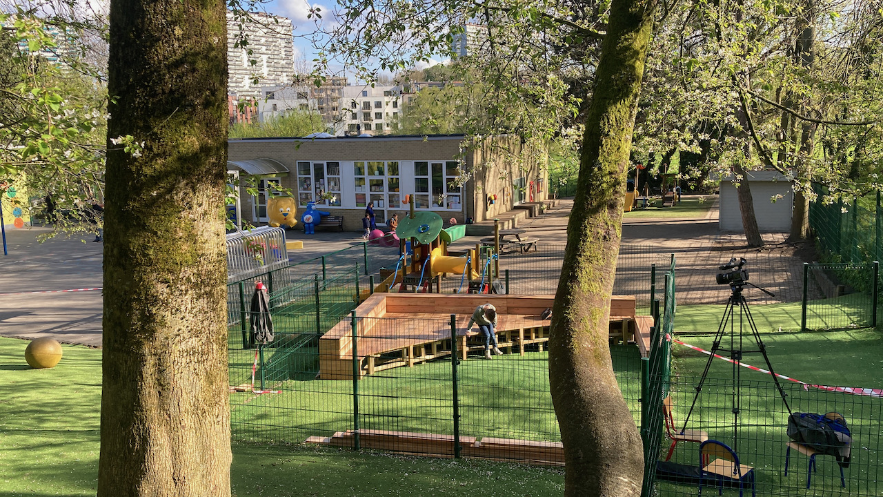 Samen met L’aissance du bois tekende en bouwde Mister box een nieuw podium voor GO basisschool Zavelput.