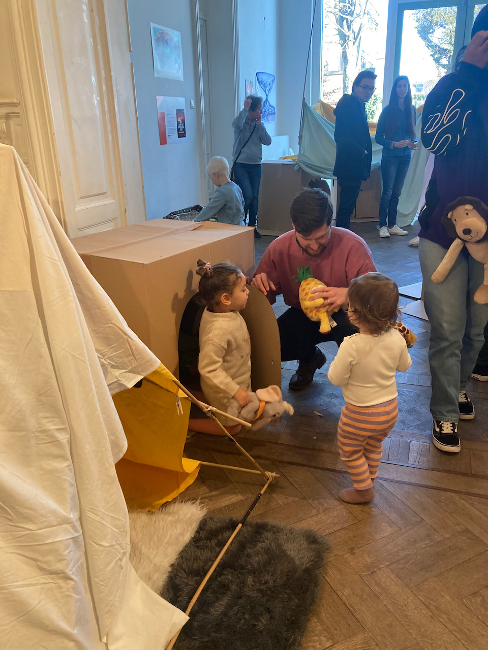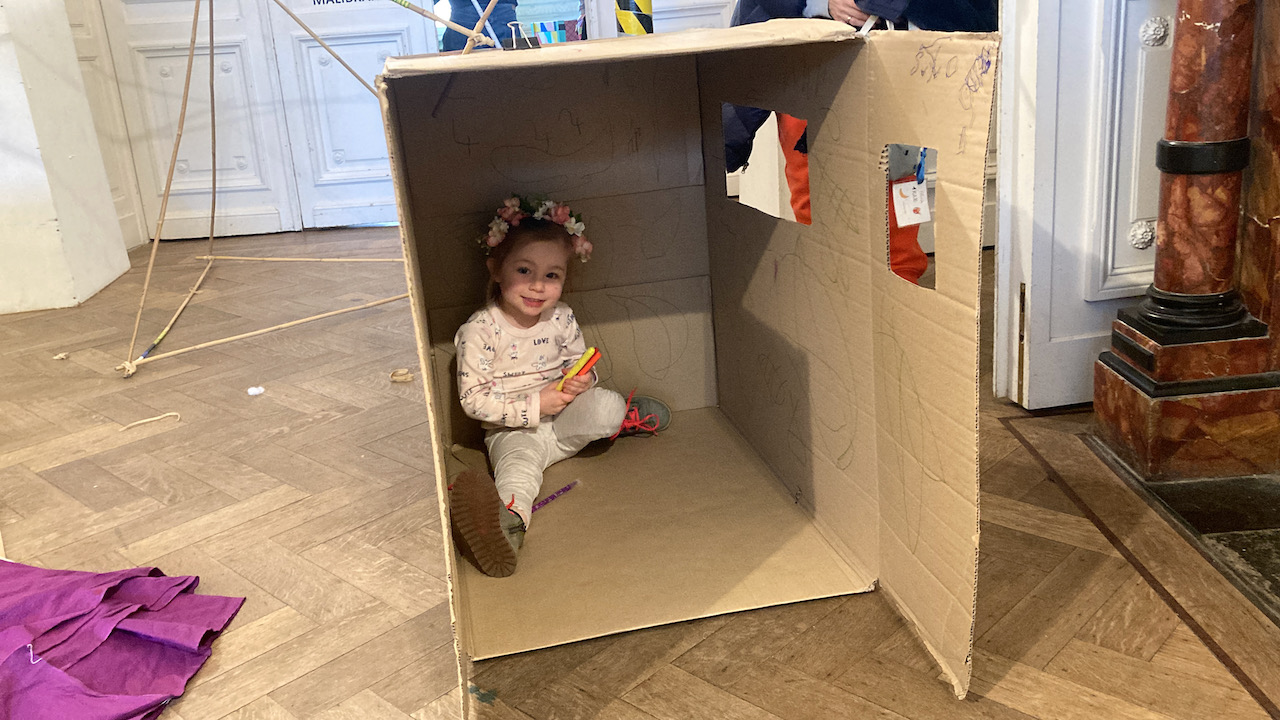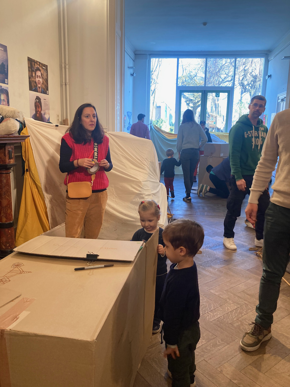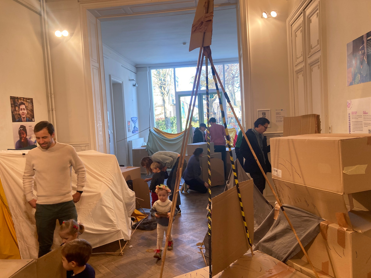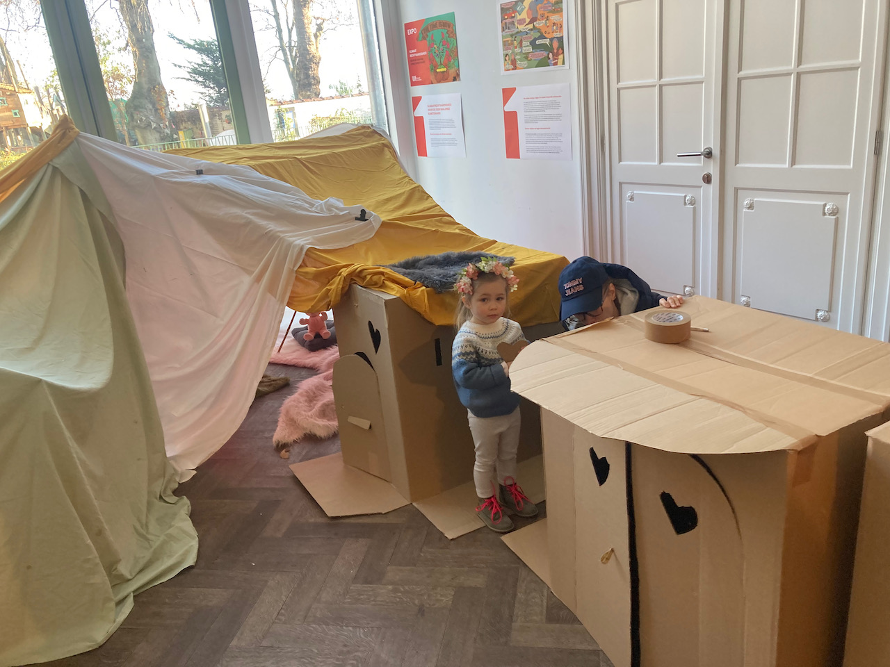 In het kader van Café-O-Lait een project van het GC Elzenhof gaf Mister Box een bouwatelier met bamboe/textiel en karton en veel knuffels….