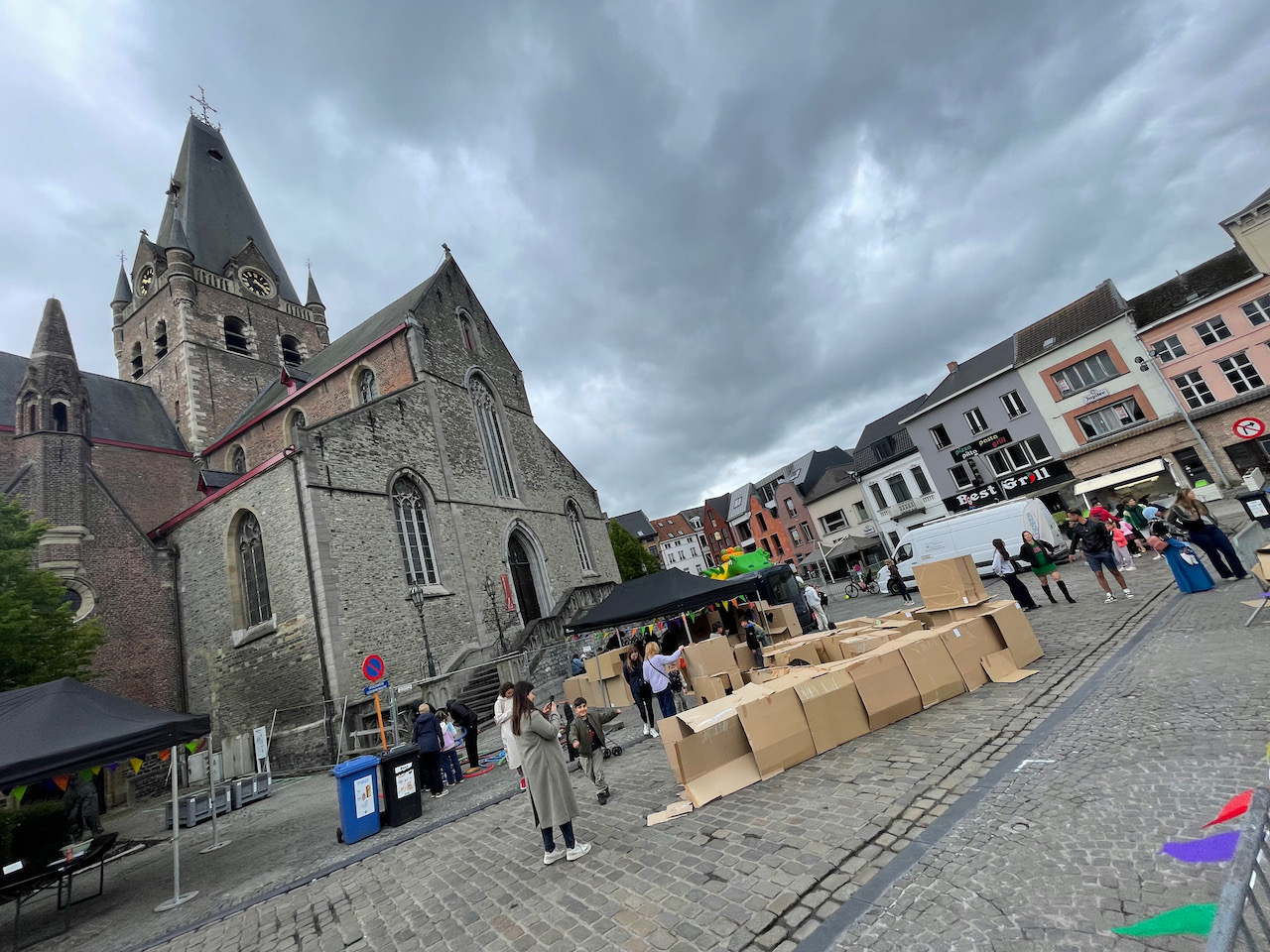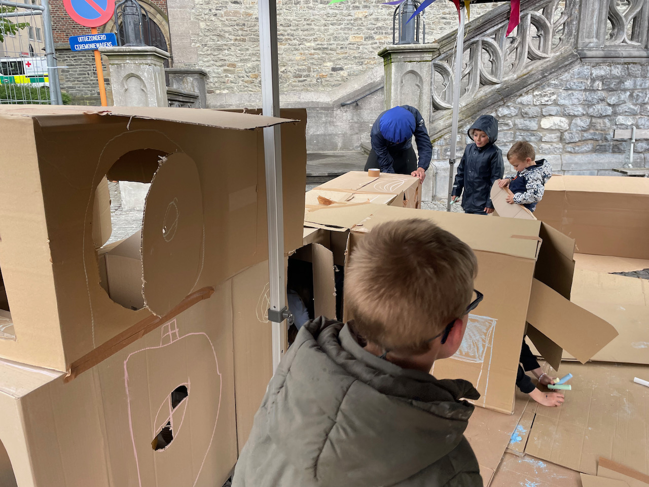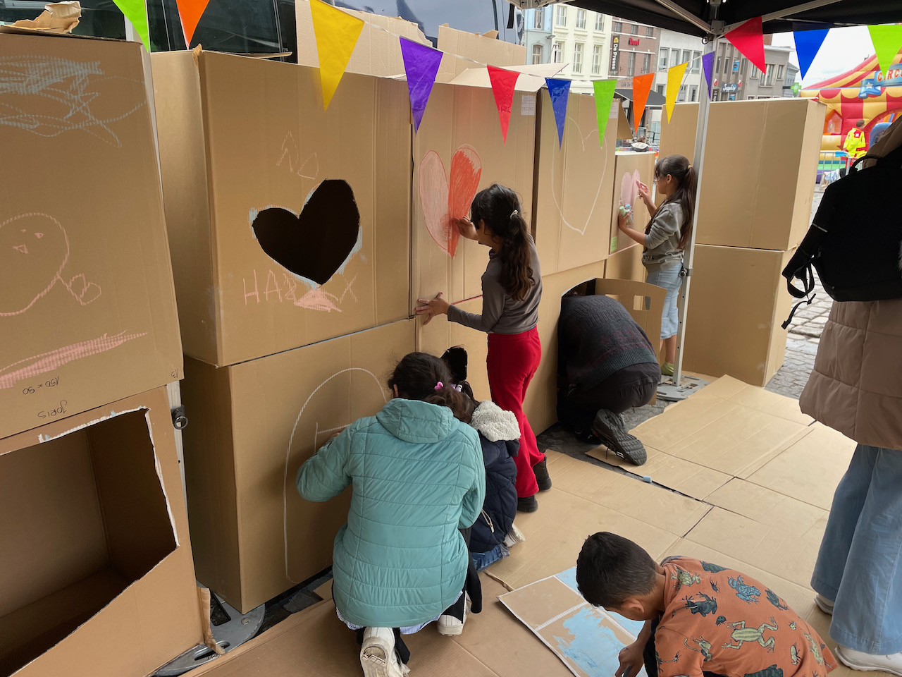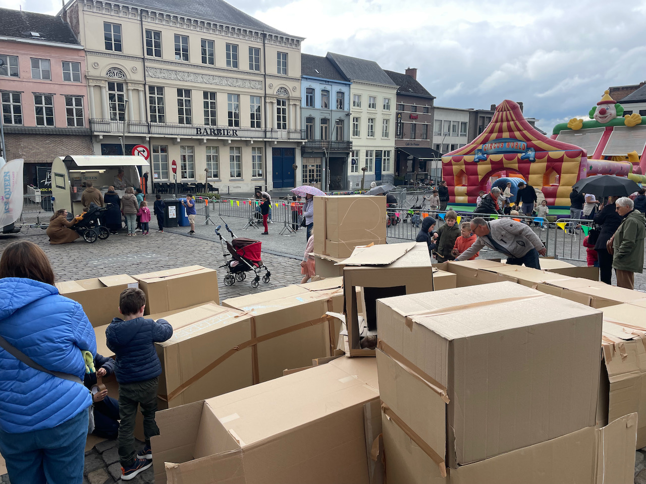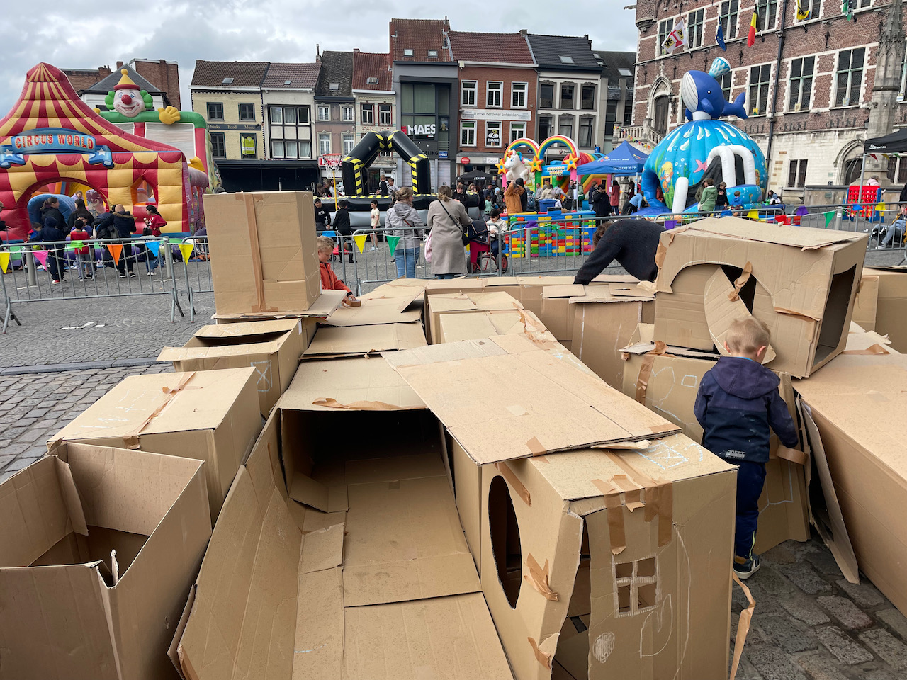Deze keer op het grote marktplein van Geeraardsbergen. Huizen, kastelen en zelf een doolhof in karton op kindermaat. Samen met zijn team gingen we de strijd aan tegen de vele springkastelen:)